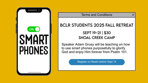 The BCLR Students Spring and Fall retreats have proved time and again to be memorable and impactful opportunities for students. Retreats are times to step away from students' typical schedules for concentrated time to hear biblical preaching and spend time meditating, worshipping,